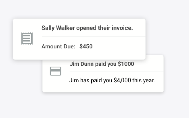 Quickly see who opened your invoices, who made a payment, and who still owes you money. You can also access more detailed reports such as a Balance Sheet and General Ledger.
